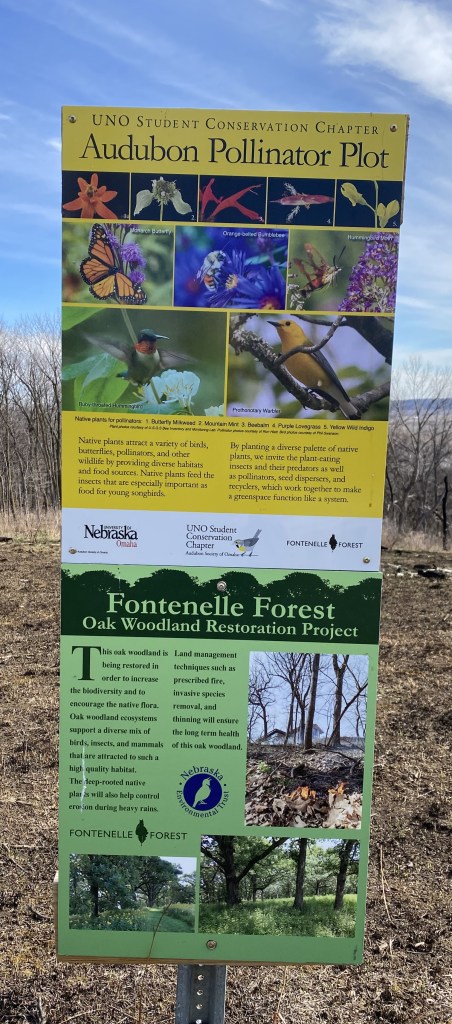 As mentioned in the previous post, I was in Omaha a week ago. After conducting my business, I planned to treat myself by visiting Neale Woods to see the slice of tallgrass prairie the naturalists at Fontenelle Forest were restoring. Upon arrival, I was momentarily disappointed to discover that the grassland and much of the woods had been put to the torch only a couple of weeks earlier.